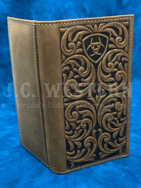 • Ariat A3561444 Mens Large Bifold Scrolling Embossed Wallet Medium Brown Bark