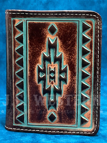 Ariat A3560102 Mens Bifold Flip Style Southwestern Wallet Brown And Turquoise