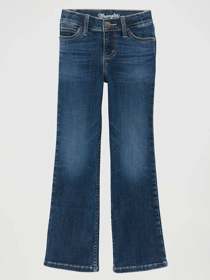 Wrangler 112371933 Girls Bespoke Bootcut Jean Lacey Navy - Made to Move, Made to Grow. Keep her comfy and grounded in cowgirl flair with our Girl’s Wrangler® Bespoke Bootcut Jean. Specially crafted from a cotton-stretch blend, these bootcut jeans offer excellent flexibility. Plus, they feature an adjust-to-fit waistband in sizes 4 – 6X to outlast growth spurts and stay in rotation longer than the typical jean. This classic bootcut also comes with the five-pocket styling, double-stitched ‘W’ embroidery, and a rope logo patch.