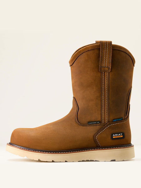 Ariat 10053613 Mens Rebar Wedge Pull-On Waterproof Composite Toe Work Boot Distressed Brown