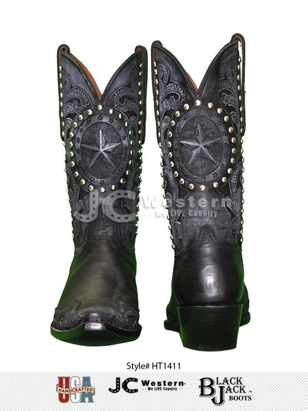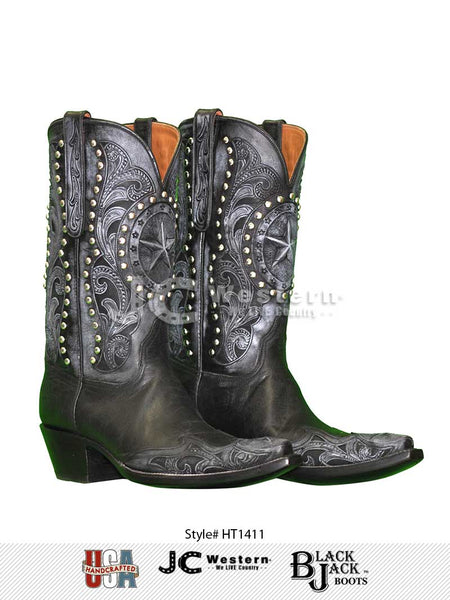 • Black Jack HT-1411 Mens Handtooled Vintage Western Boots Black