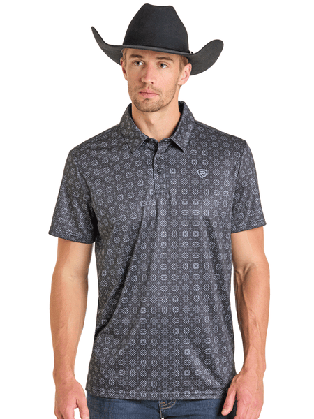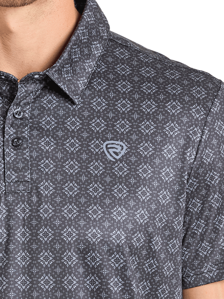 • Rock & Roll Denim BM51T07280 Mens Medallion Printed Polo Black