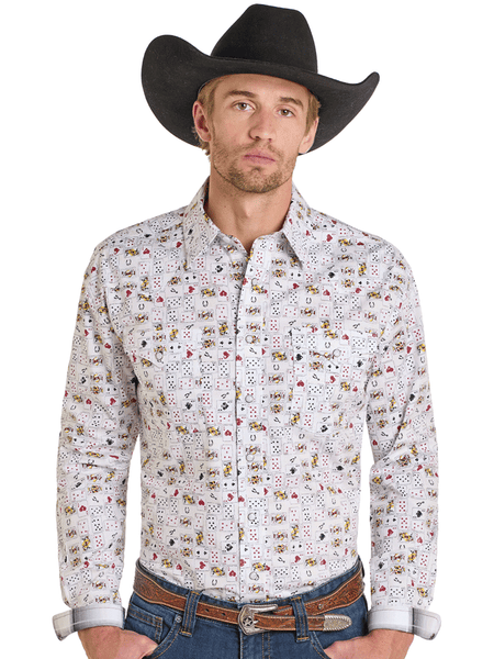Panhandle RMN2S07104 Mens Gambler Pearl Snap Long Sleeve Shirt White