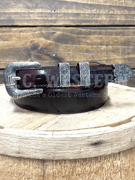 Lucchese W03106-6301-36 Custom Smooth Goat Leather Tapered Belt Black Cherry Size 36