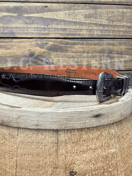 • Lucchese W03106-6301-36 Custom Smooth Goat Leather Tapered Belt Black Cherry Size 36
