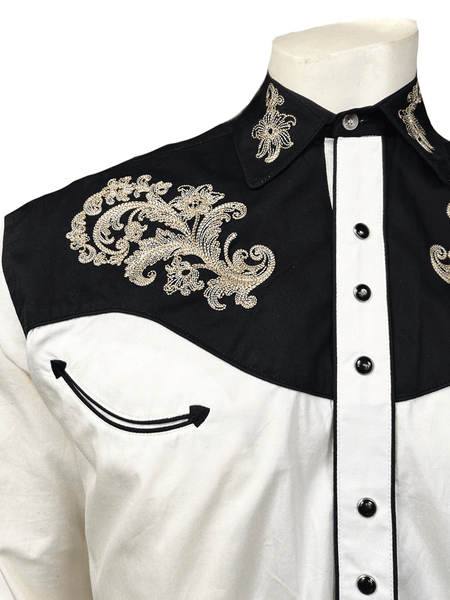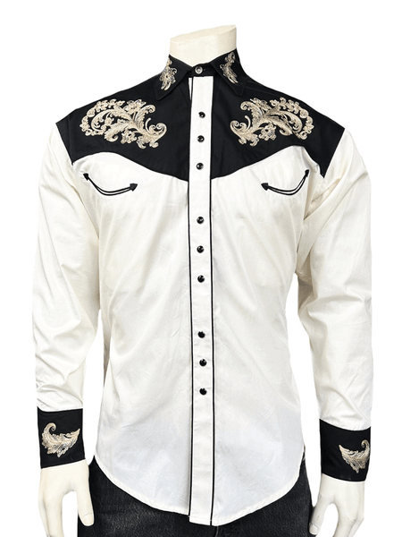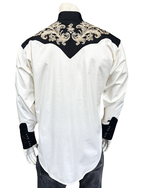 Rockmount 6789-KHA Mens Floral Embroidered Western Shirt Ivory