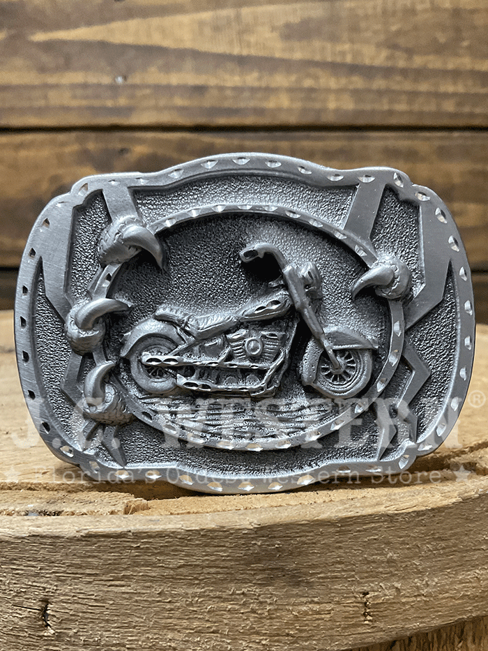 Colorado Silver Star 5-5991-DC Motorcycle / Claws Pewter Buckle Silver - Pewter, rectangular buckle, diamond cut by hand. Motorcycle in a center oval held by eagle claws.