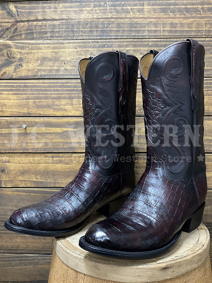 Lucchese GY1029.63 Mens JONES Caiman And Buffalo Boots Black Cherry - Premium, handcrafted cowboy boot blending classic Western style with exotic materials, a refined look, superior comfort from quality leather, and durable construction.