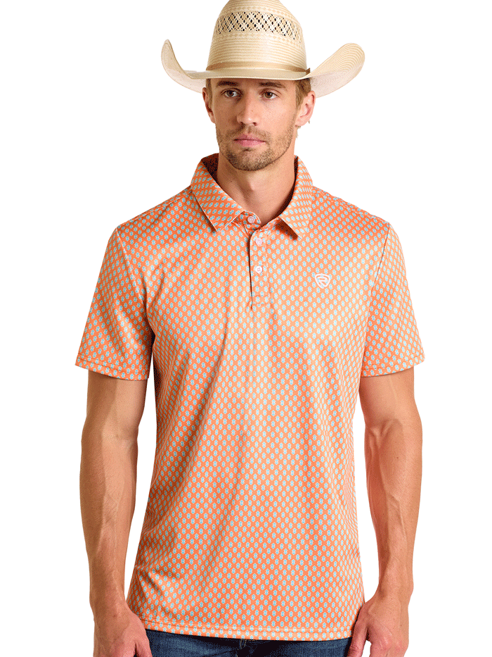 Rock & Roll Denim BM51T06614 Mens Geo Printed Polo Shirt Orange