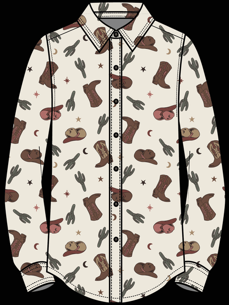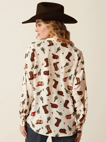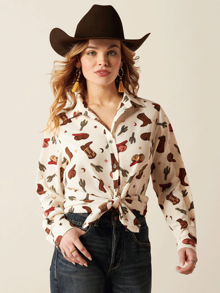 Ariat 10052923 Womens Homestyle Western Cowgirl Print Shirt Ivory