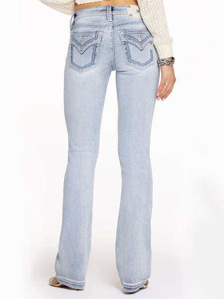Miss Me M5082B192L Womens Mid Rise Bootcut Jeans Light Wash