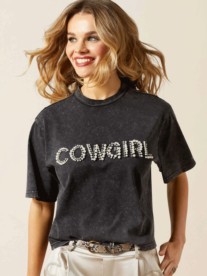 Ariat 10065990 Womens Cowgirl Pearl T-Shirt Washed Black