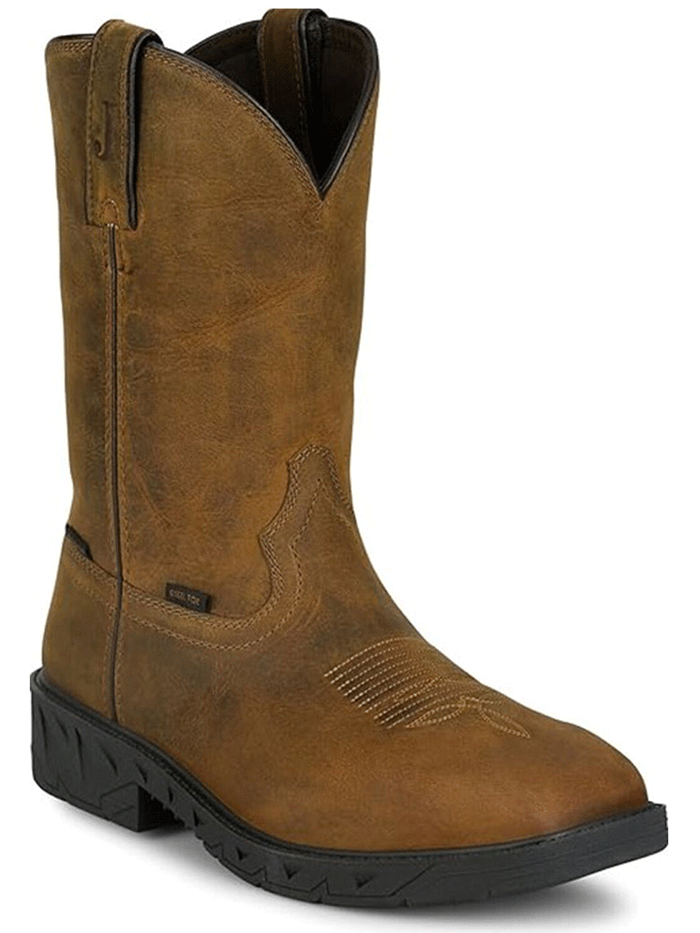 Justin PD4067 Mens Trencher Waterproof Steel Toe Work Boot Brown