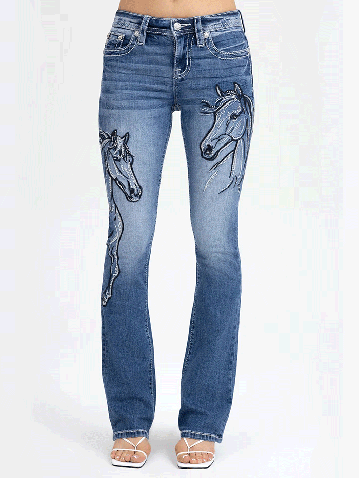 Miss Me M9564BV Womens Jesse Bootcut Jeans Medium Blue