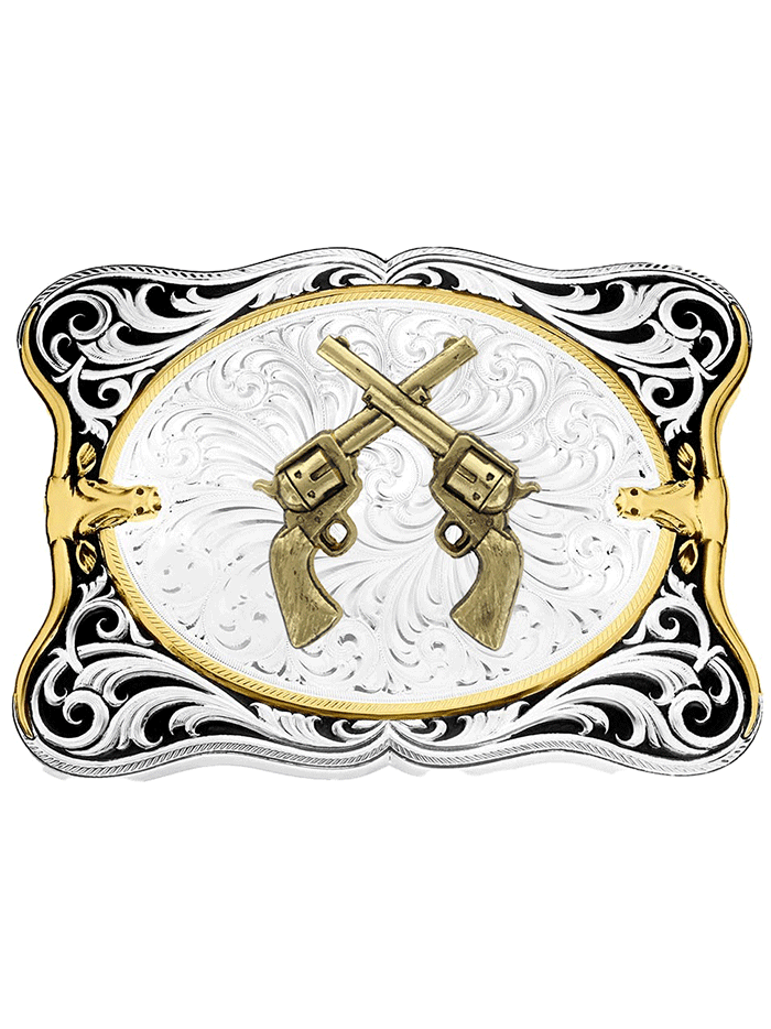 Montana Silversmiths 55610-878 Crossed Pistols Belt Buckle Silver