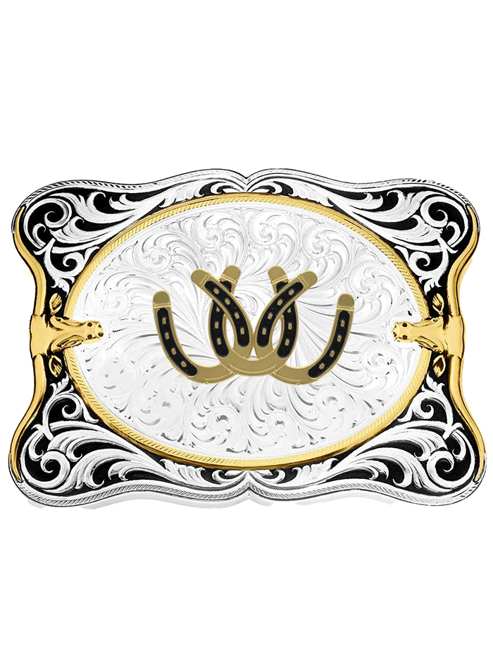Montana Silversmiths 55610-887 Triple Entwined Horse Shoes Belt Buckle Silver