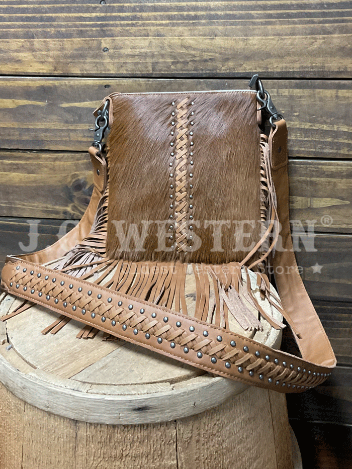 Montana West RLC-L186BR Womens Genuine Leather Hair On Fringe Crossbody Brown