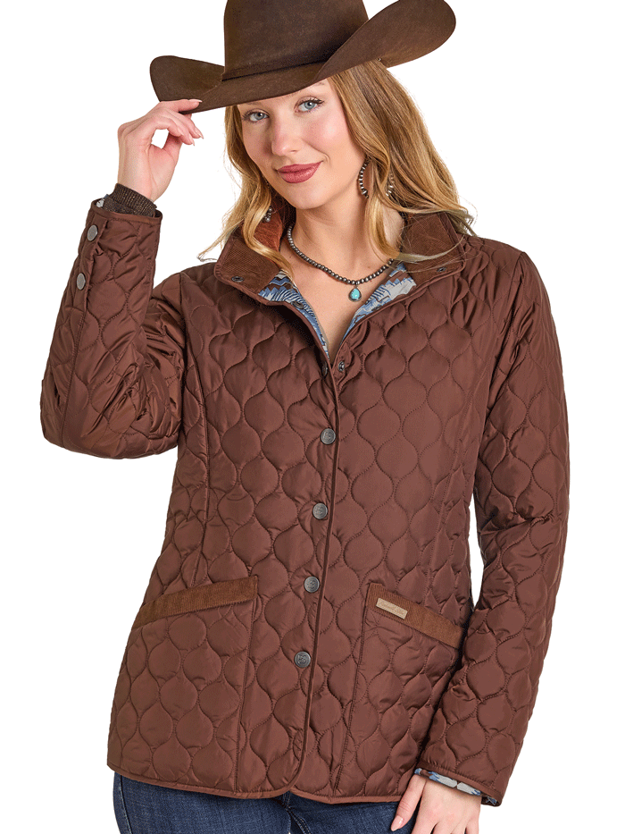 Panhandle DW92C06857-BR Womens Quilted Riding Jacket Brown