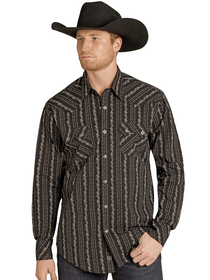 Rock & Roll Denim BMN2S07632 Mens Wallpaper Print Long Sleeve Snap Shirt Black