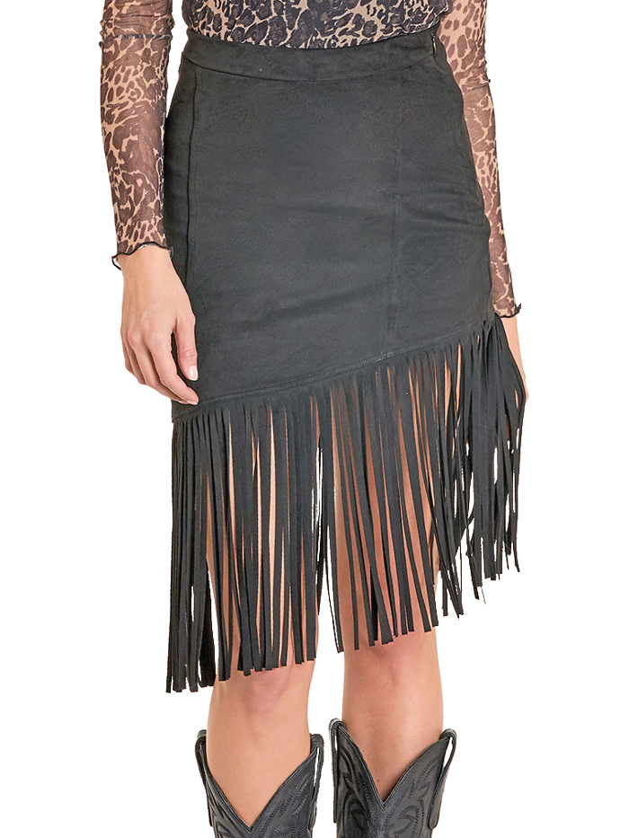 Rock & Roll Denim BW69B07793-BK Womens Asymmetrical Fringe Skirt Black