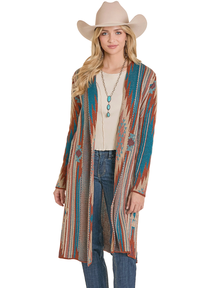 Rock & Roll Denim BW95T07789 Womens Aztec Duster Teal