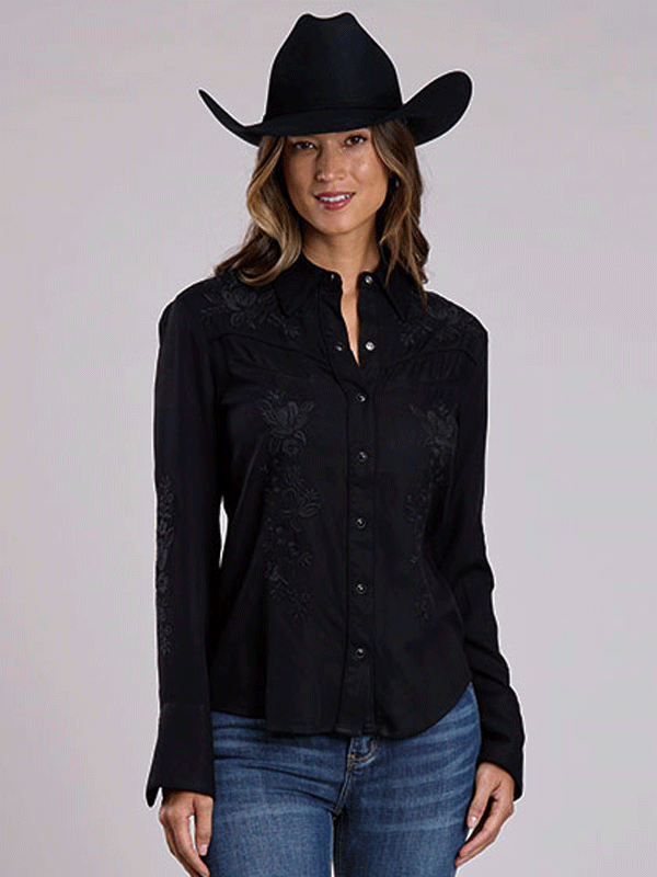 Stetson 11-050-0565-7073 Womens Embroidery Western Shirt Black