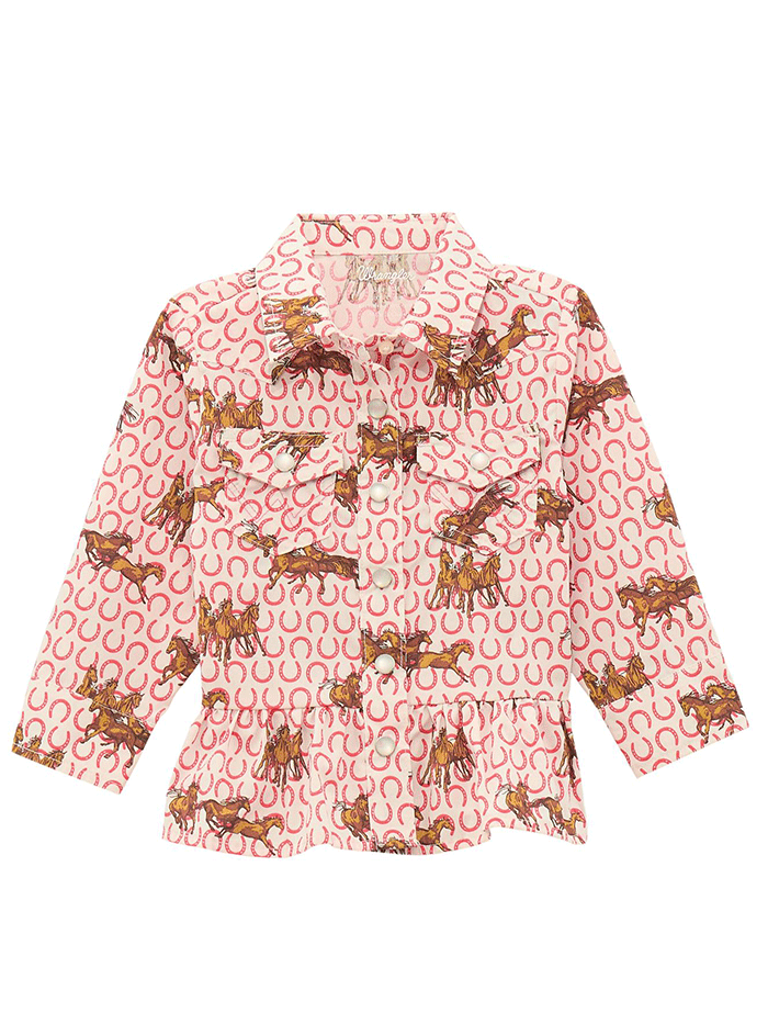 Wrangler 112371918 Girls Horses Western Long Sleeve Shirt White